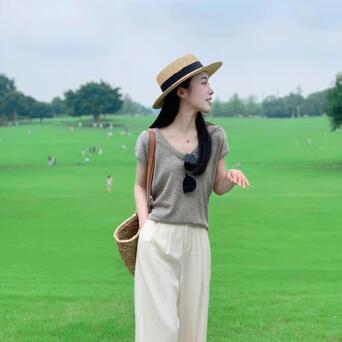 证券股票配资公司排名 #夏日生活打卡季#✨夏日休闲风来袭!灰色U领小飞袖T恤×杏色棉麻阔腿